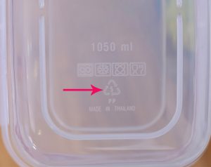 Ký hiệu dưới đáy hộp: Ưu tiên các loại hộp có ký hiệu số 1 (PET) hoặc số 5 (PP) dưới đáy.