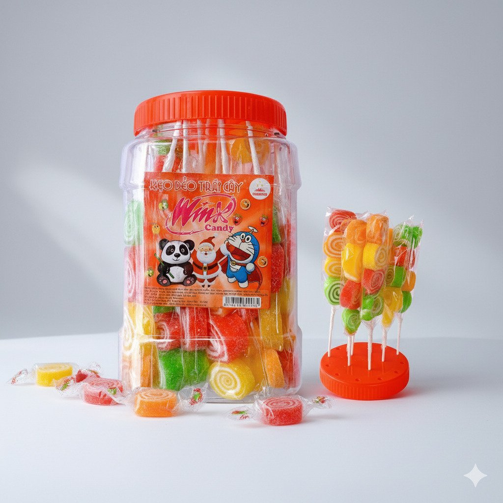 Đường, siro glucose, gelatin, nước ép trái cây cô đặc, hương liệu tự nhiên, màu thực phẩm được phép sử dụng.