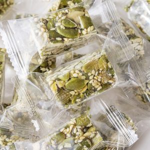 Độ Giòn Hoàn Hảo: Các hạt bí được bao bọc trong lớp kẹo mỏng, dẻo dai, khi ăn tạo cảm giác giòn rụm thú vị, tan dần trong miệng.