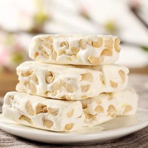 Nguyên liệu chọn lọc: hạnh nhân rang vàng, đường, mật ong, lòng trắng trứng, bơ, đảm bảo chất lượng cao.