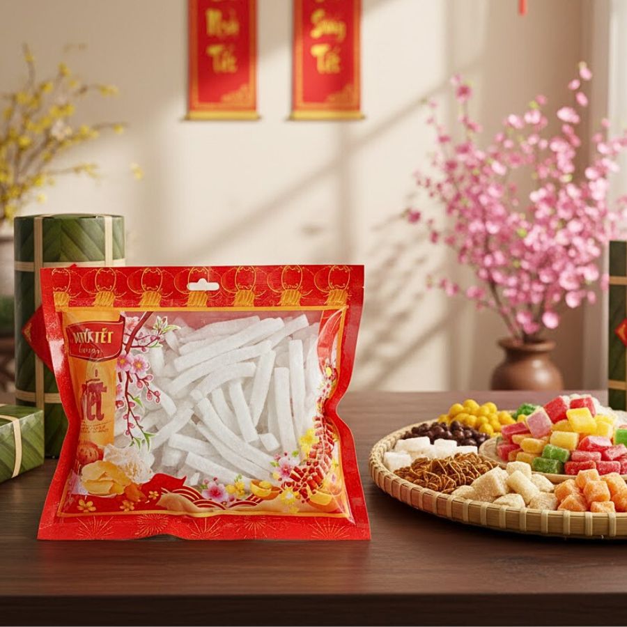 Sau khi mở bao bì, nên để mứt trong lọ kín để giữ độ dẻo và hương thơm.